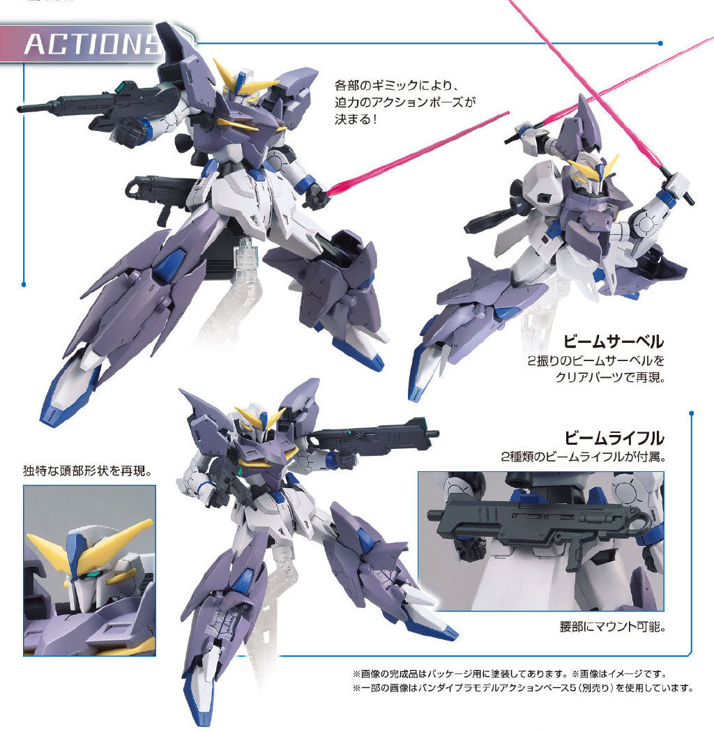 The Gundam Tertium is equipped with two beam sabers, two types of beam rifles, a shield binder, and one Hyper Destlance. It can also be equipped by the optional Seltsam Arms for further custom purposes.